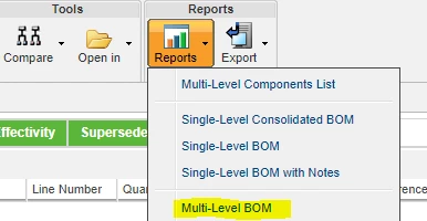 The OOTB Multilevel Report shows new Window with BOM table where you have another functions do download the results in some file formats.