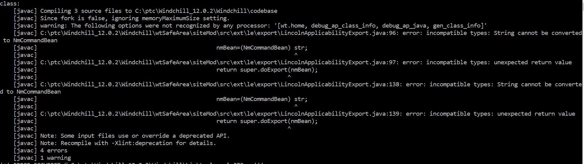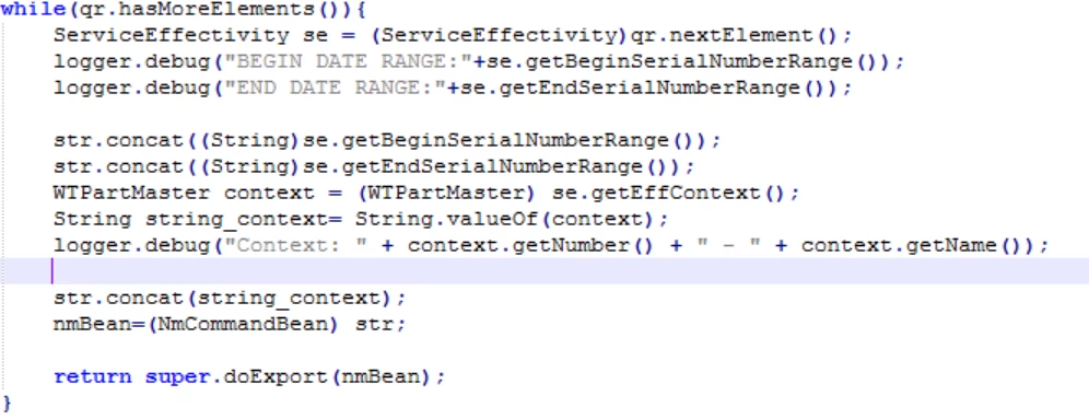 I was trying to get data from ServiceEffectivity to a String and I tried to convert it to NmCommandBean as shown in the figure. When I tried to compile it I am now getting a error as String cannot be converted into NmCommandBean. How should I solve this problem?