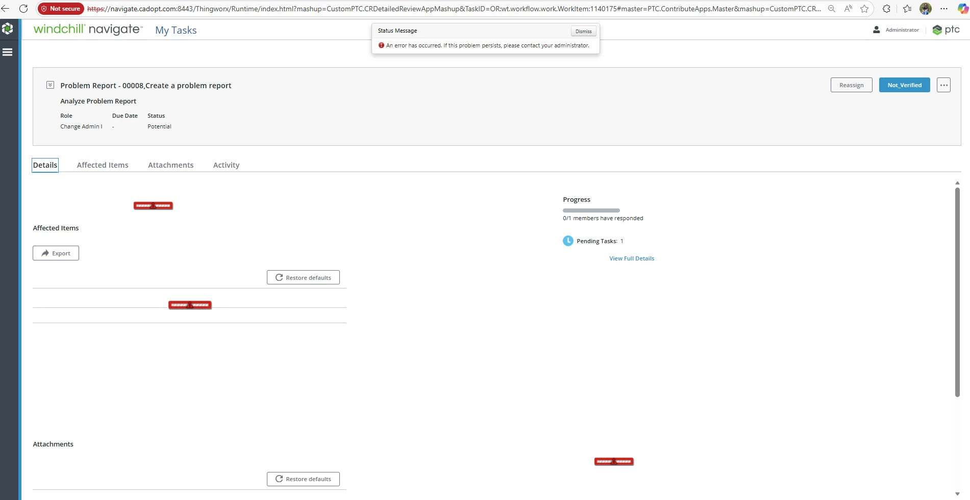 NNandha7-BedrockForum|Forum|3 months agoDecember 24, 2025Questionhow to get the problem report task & Attributes from windchill to Windchill navigate for approvalForum|Forum|3 months agoDecember 24, 20251 reply445 viewsThe Analyze Problem Report task is successfully displayed in Windchill Navigate, but the associated task-specific attributes are not being retrieved. CodingMashup-WidgetCustomizationCustom AppsView Apps