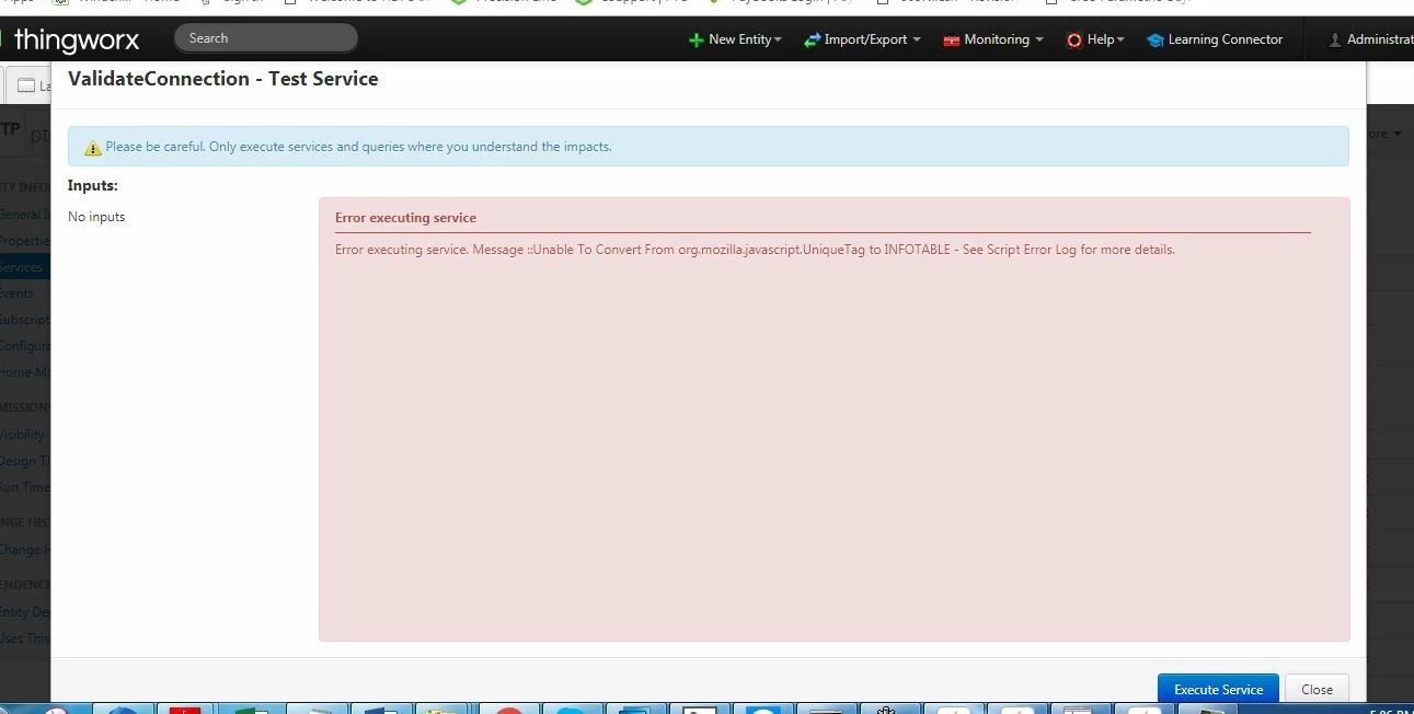 Error executing service. Message ::Unable To Convert From org.mozilla.javascript.UniqueTag to INFOTABLE - See Script Error Log for more details.