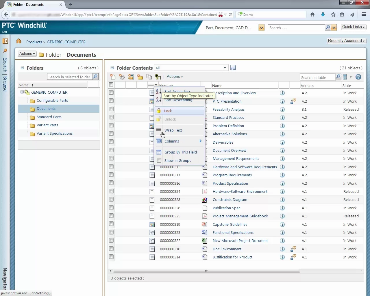This is a quick video tip demonstrating how to add the Attachment and Structure column indicators to the folder browser in Windchill 10.2. These columns are not on by default and often go unnoticed since there is such a long list of columns that can be displayed. When added, any document containing Attachments or Structure will be identified by either the Attachment or Structure icon in the respective column. The icons are links which will bring you directly to the Content tab or the Structure tab.
