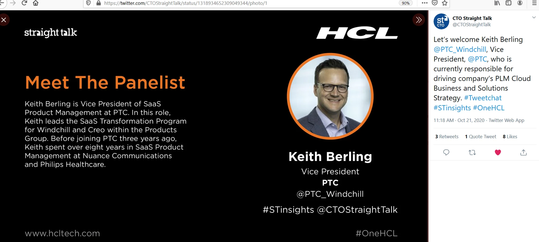 Last week, Keith Berling, VP of SaaS Solutions, was a Twitter panelist on CTOStraightTalk which was hosted by HCL. During the session, Keith discussed how PLM on PTC Cloud is transforming manufacturing and enabling collaboration in this current pandemic world. To see the entire Tweetchat, click here.